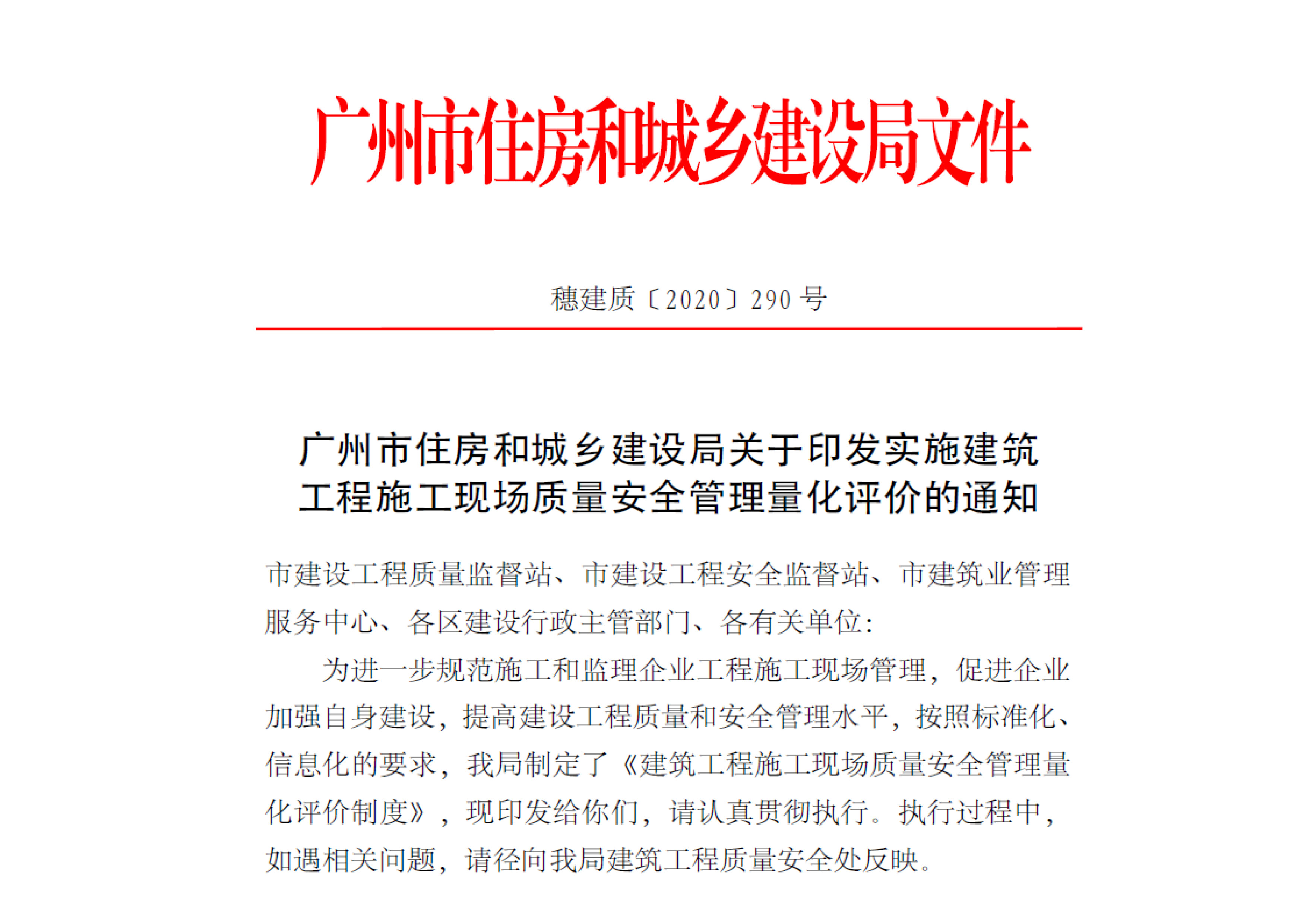 廣州市住房和城鄉(xiāng)建設局關于印發(fā)實施建筑工程施工現場質量安全管理量化評價的通知